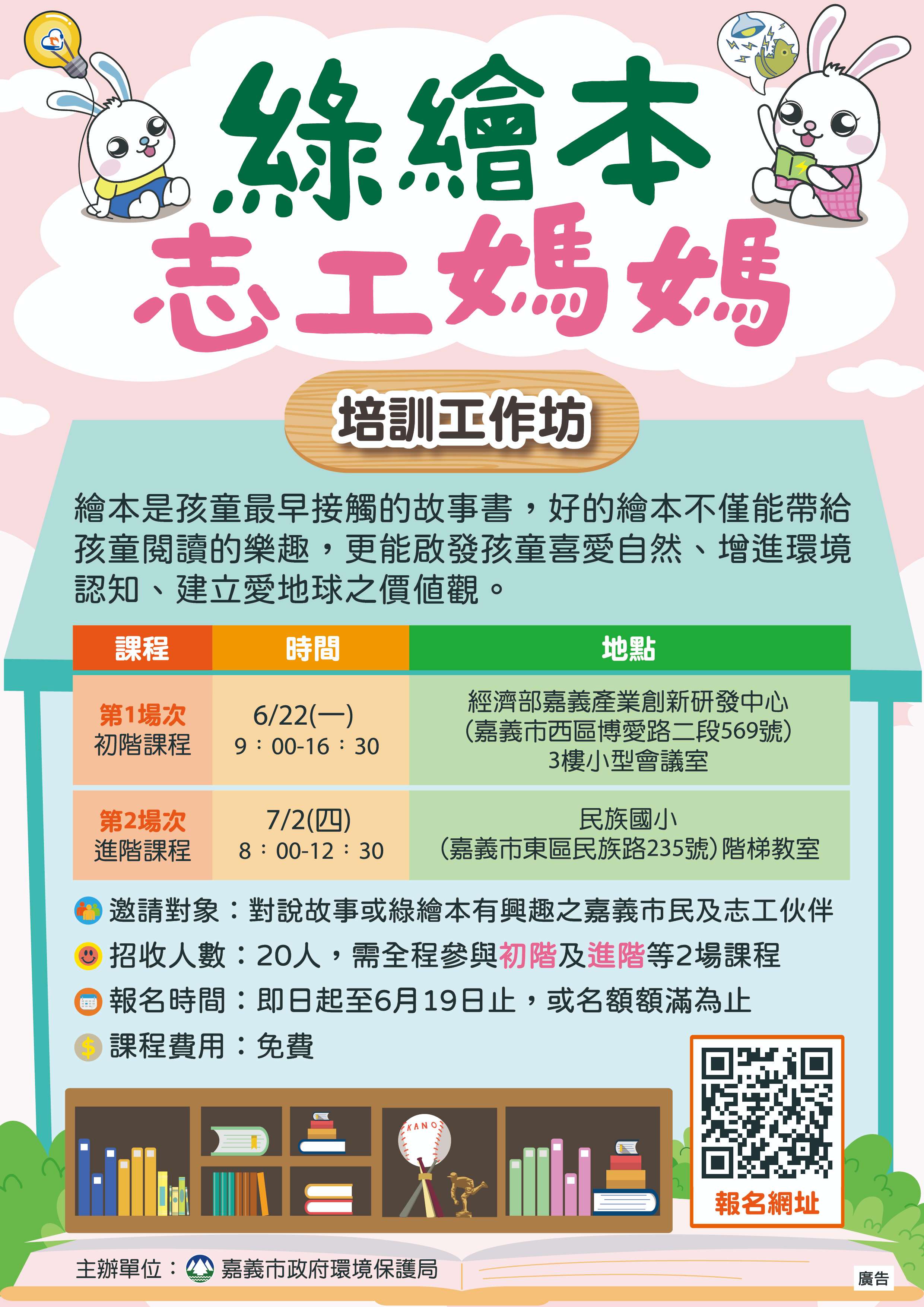 二、檢送綠繪本志工媽媽培訓工作坊文宣1份。