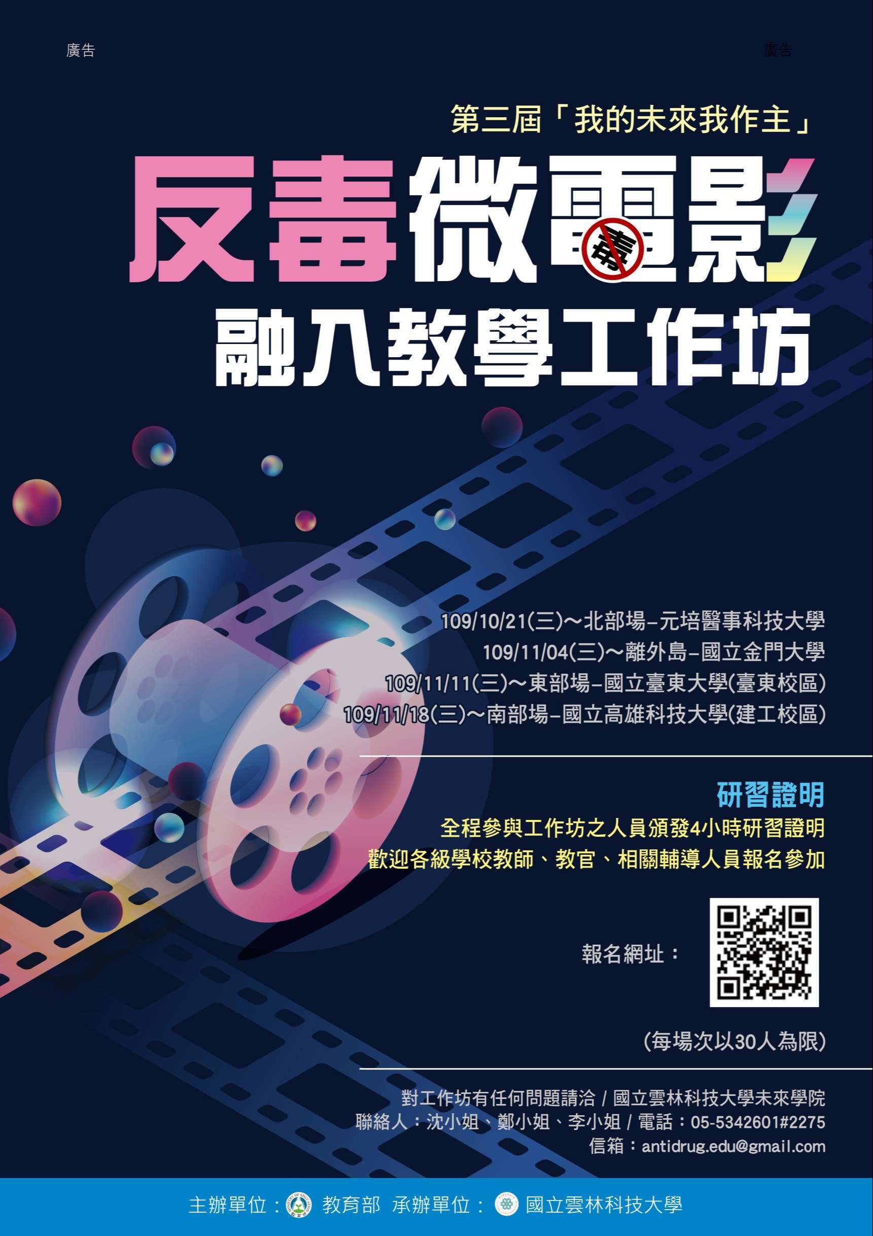 國立雲林科技大學反毒微電影融入教學工作坊海報及議程