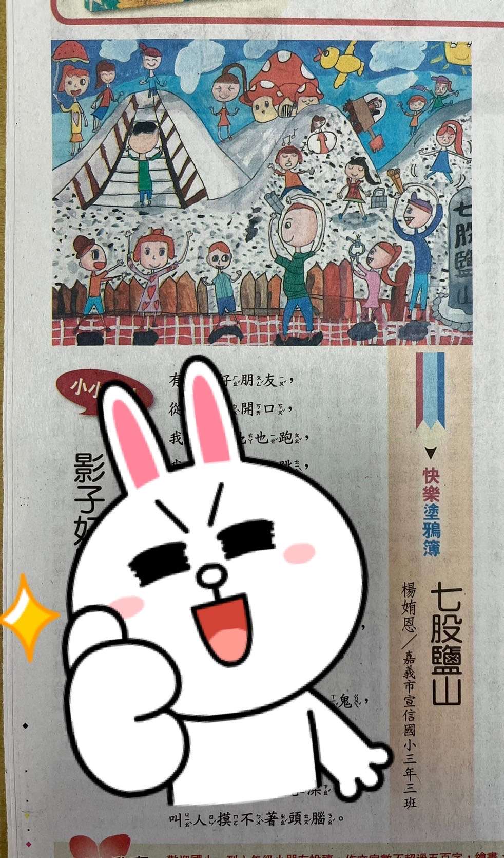 恭喜本校三年三班楊姷恩同學畫作3/9刊登在人間福報,感謝吳怡瑛老師的指導!