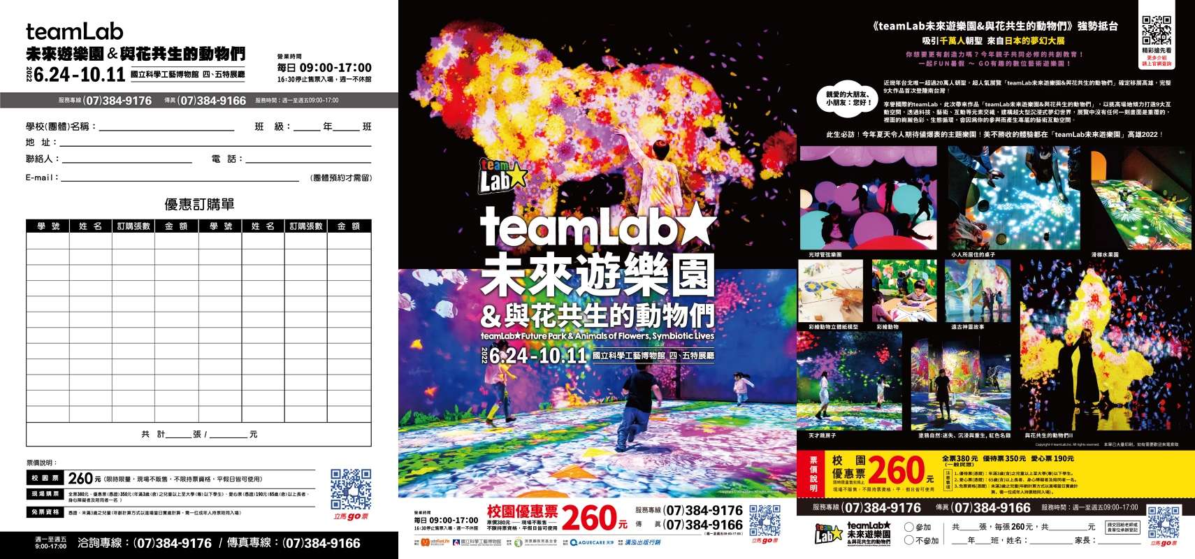 主旨:本館訂於111年6月24日至111年10月11日辦理「teamLab未來遊樂園&與花共生的動物們」特展,請惠予轉知貴校師生,並鼓勵師生及家長踴躍參與,規劃納入校外教學之參考依據,請查照。