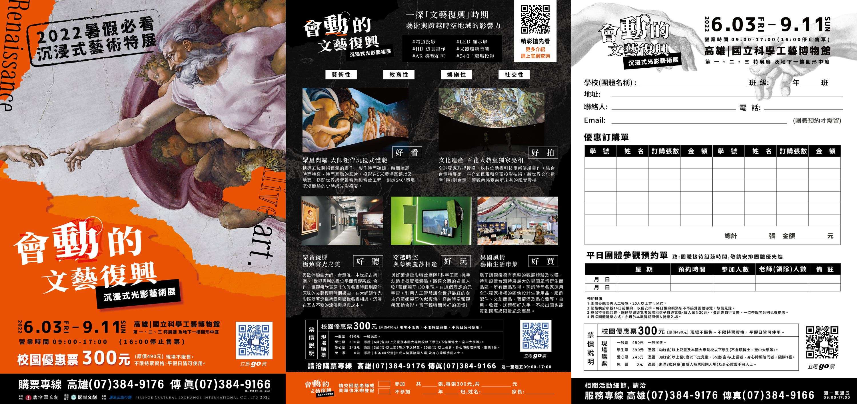 四、檢送活動資料簡介及優惠訂購暨團體導覽預約單1份,敬請貴校員工、師生及家長踴躍參加。