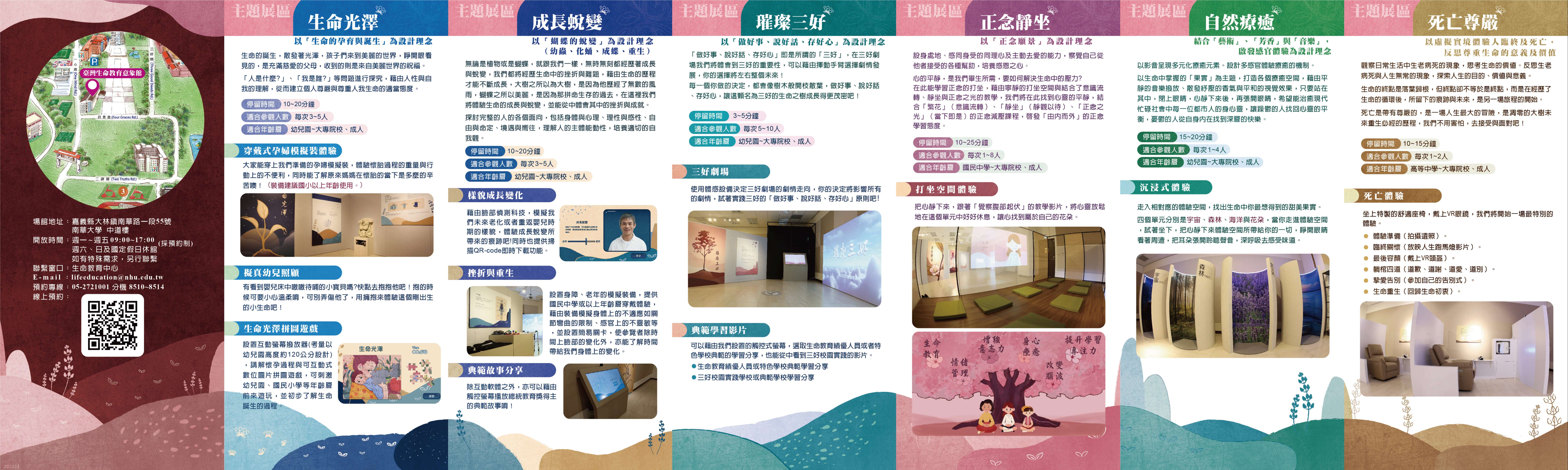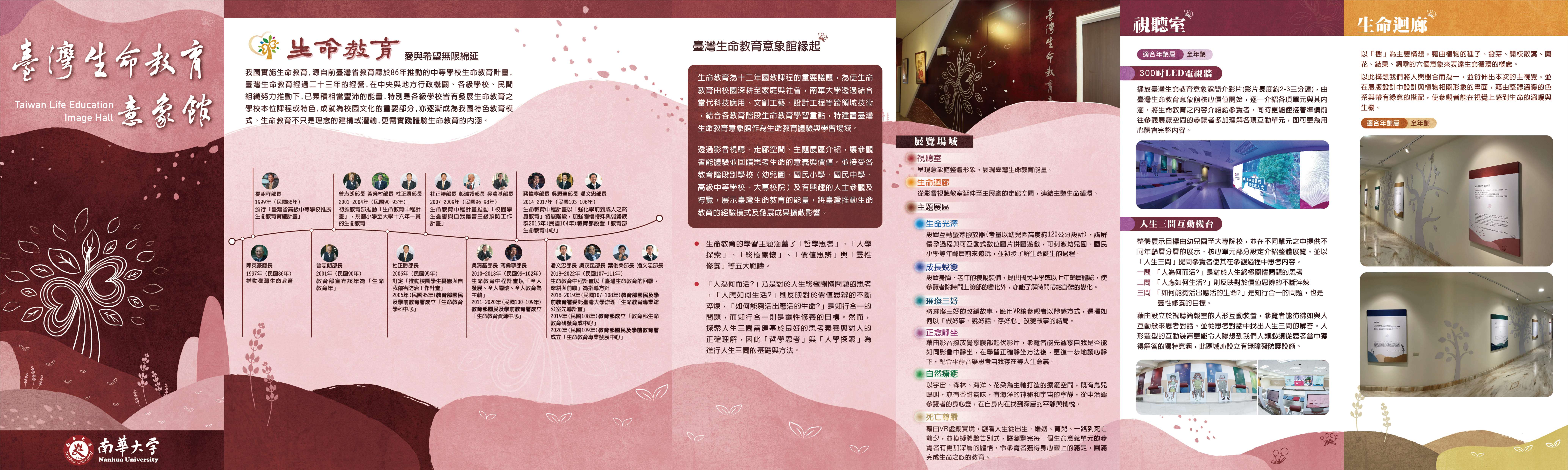 三、「臺灣生命教育意象館」位於南華大學(嘉義縣大林鎮南華路一段55號)中道樓一樓,採預約制免費參覽,線上預約網址:https://tleih.nhu.edu.tw/,歡迎各校前往參觀。
