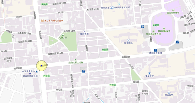 南田路、芳安路315巷、芳安路、頂福街(嘉義市東區) |