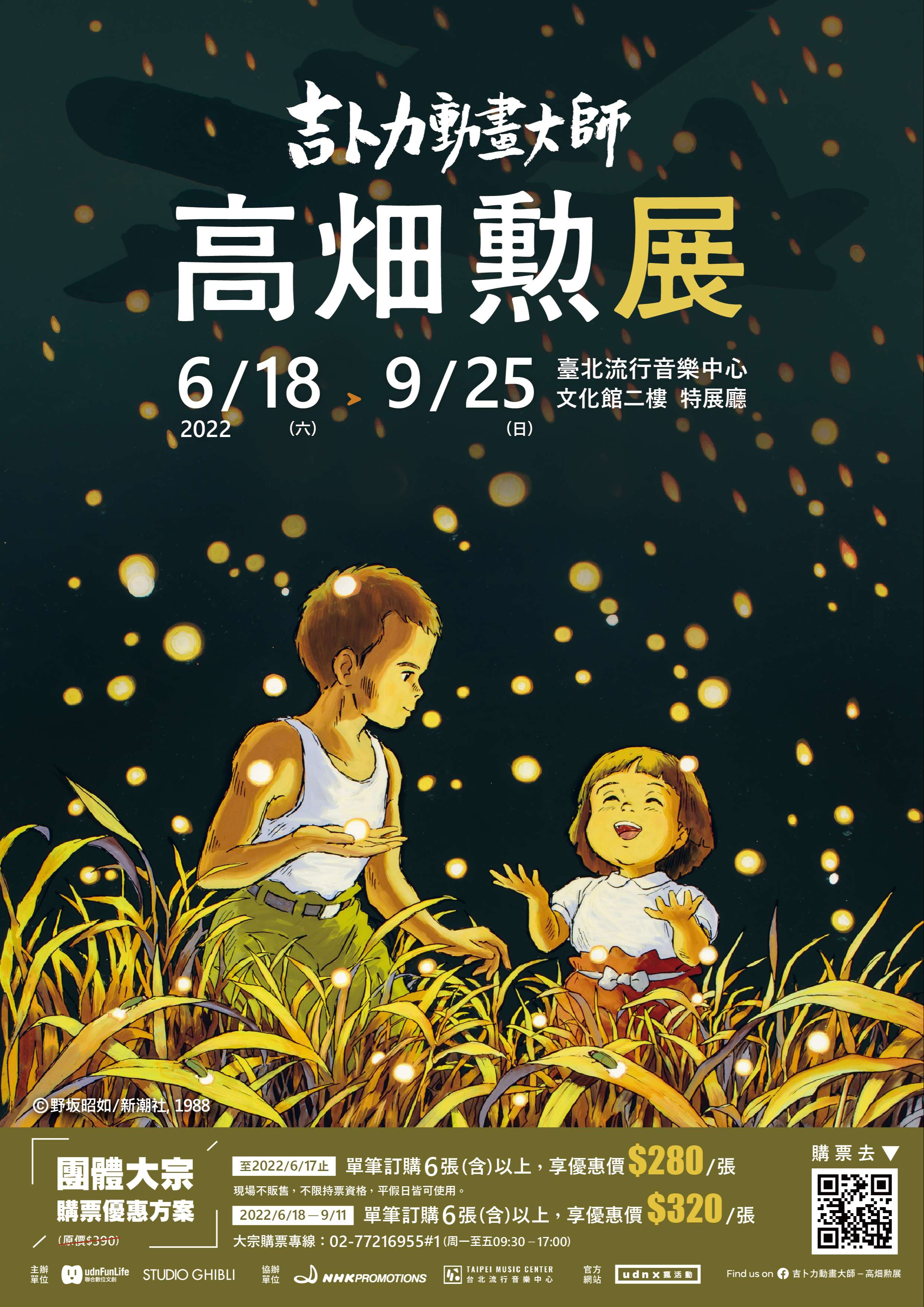 (一)說明:由東京國立近代美術館和吉卜力工作室共同策劃的高畑勲展,開展至今佳評如潮,為今年暑假最受歡迎人氣特展!高畑勲,對於日本的動畫發展具有極重要地位的動畫大師;1985年與宮崎駿、鈴木敏夫共同創辦了「吉卜力工作室」,自此牽動日本動畫半世紀的發展,並一舉躍進國際舞台。本次特展展件高達2,000件,完整呈現高畑勲導演對日本動畫的影響力及與吉卜力工作室密不可分的關係。展覽期間還有吉卜力商店快閃北流,包括展覽限定周邊、精選日本熱銷商品,挑戰你的荷包,另有多項互動拍照區,一起穿梭吉卜力動畫世界、感受最強魅力~敬請把握最後的大宗購票優惠!