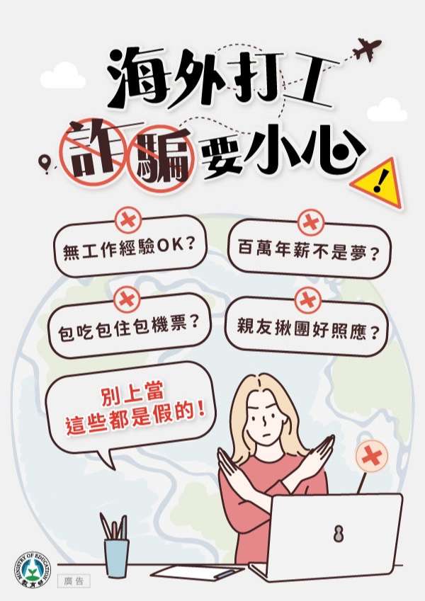 (二)「海外打工詐騙要小心」(海外求職打工詐騙)電子文宣。