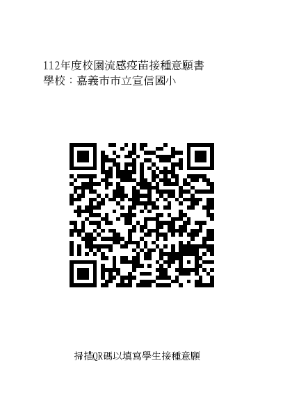 因疾管署誤植流感疫苗意願書內容,為了保障學生的權益,請家長再次點選宣信國小專屬連結或掃描QR碼重新簽署,造成家長困擾,請見諒。