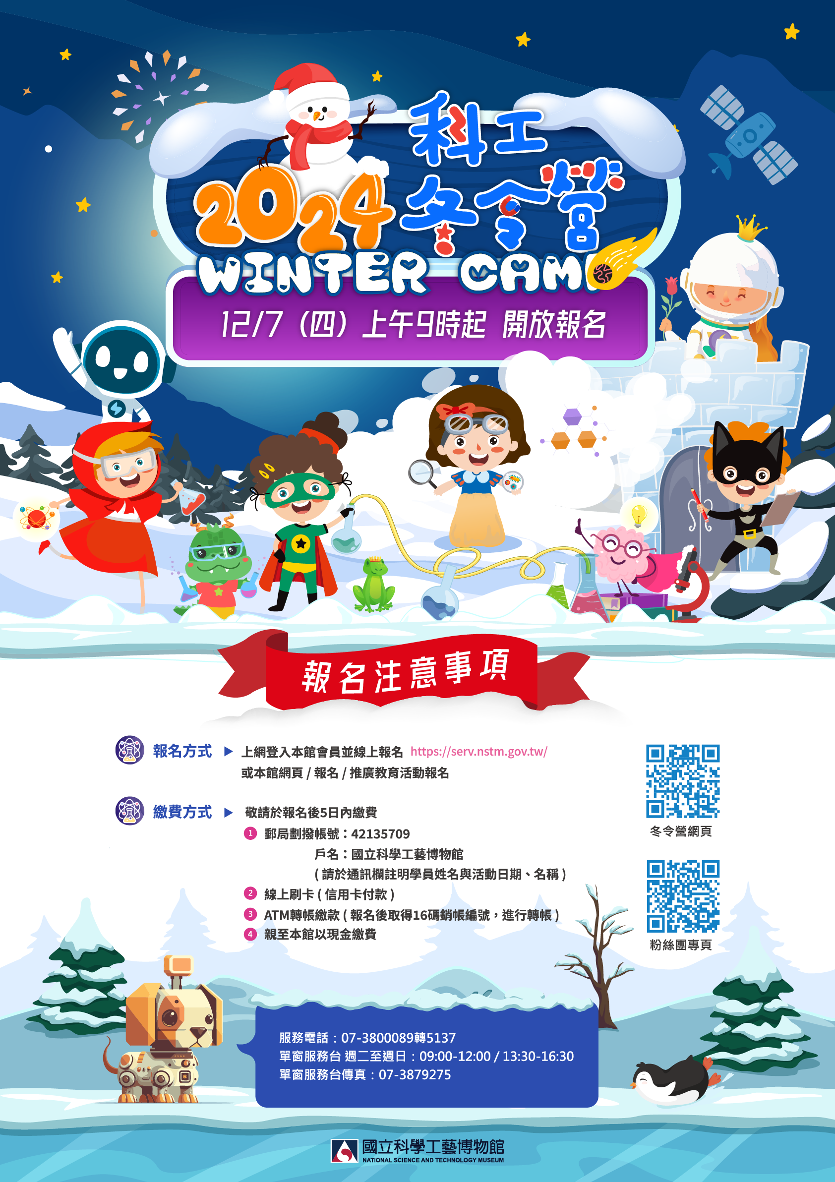 一、本館為提供學生充滿樂趣的科學體驗與學習經驗,於113年1月20日至2月13日期間,推出一系列冬令營活動,並以108課綱「自發、互動與共好」核心素養為基礎,規劃設計生動有趣的科學活動,期能寓教於樂,培養學生創意思考、互動合作、與互惠共好的學習態度。