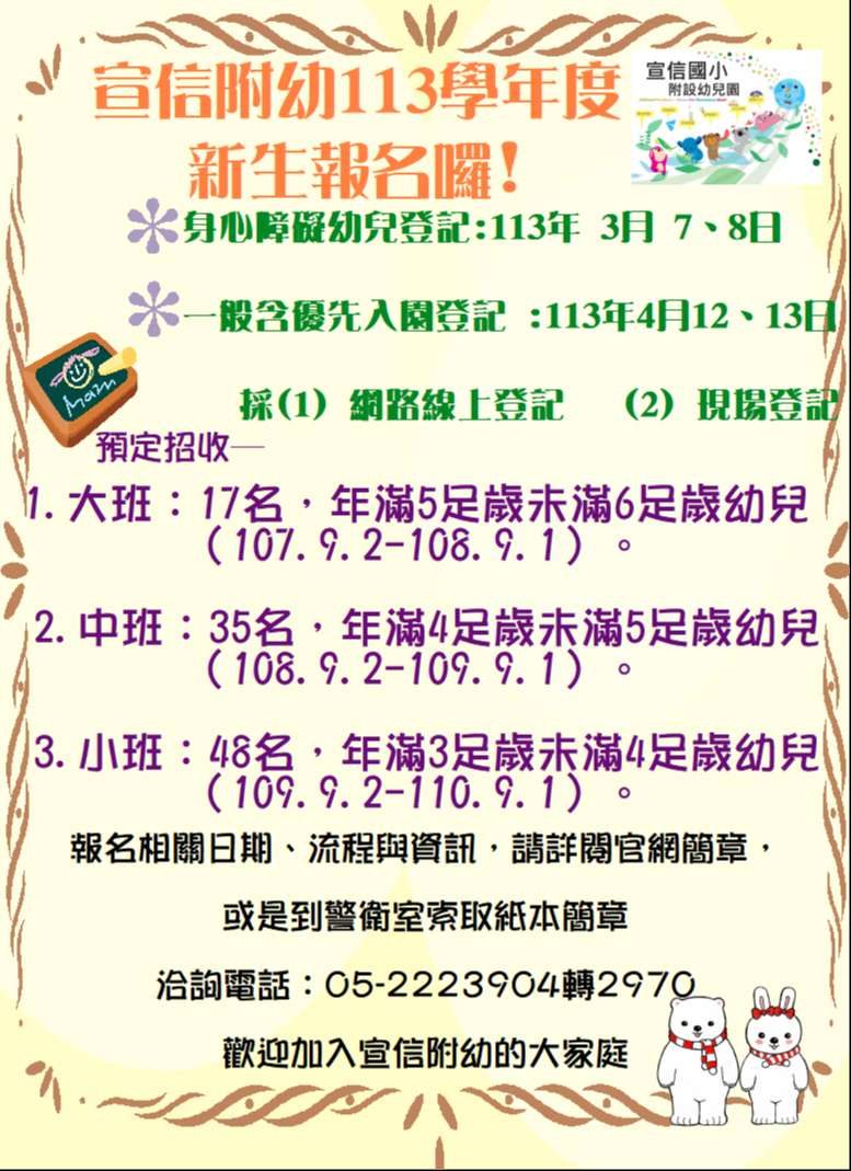(另有新增幼幼班正在籌備中,待新增班完工後可招收幼幼班幼兒,屆時將另行公告)