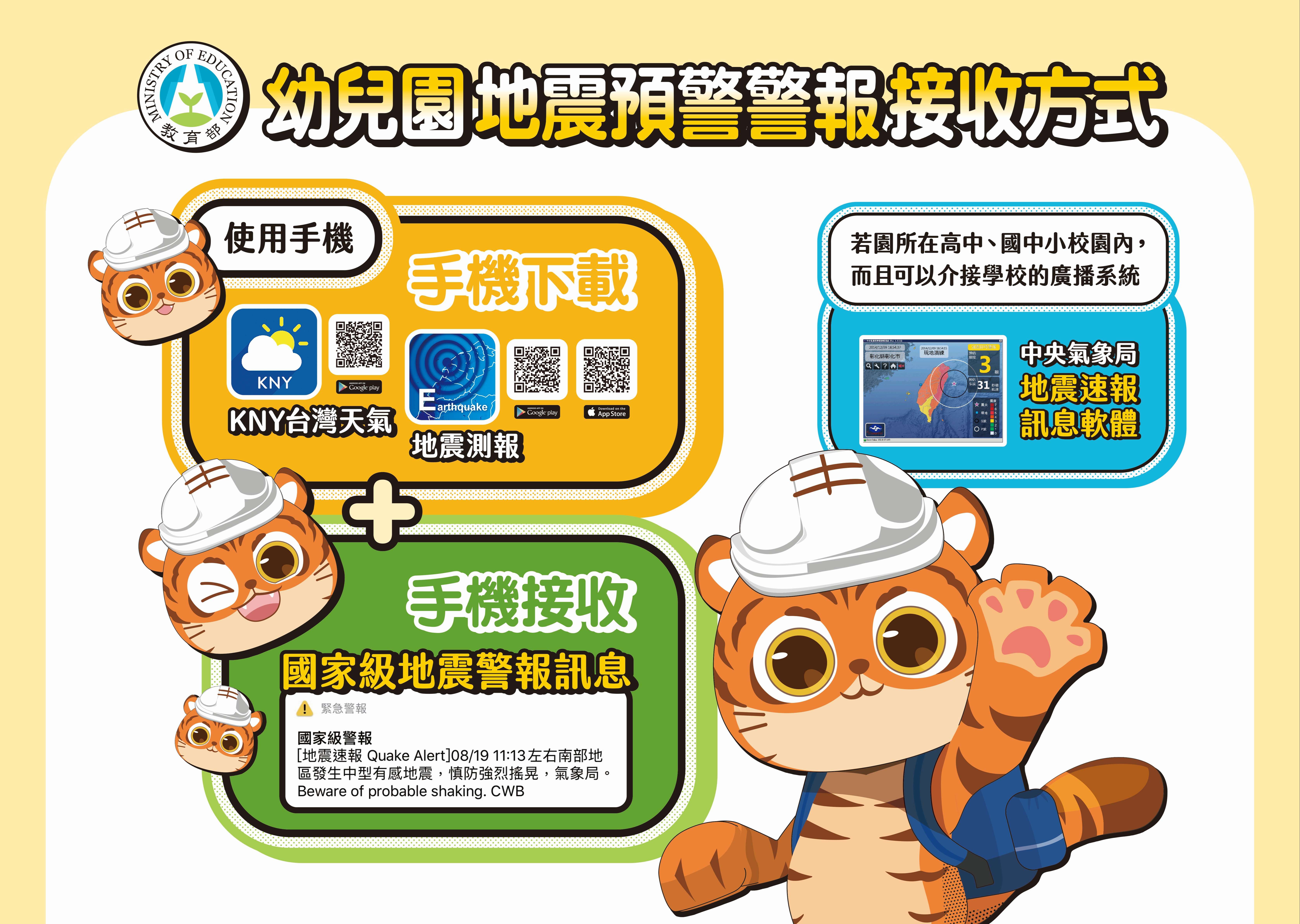 (一)為測試強震即時警報軟體運作情形,訂於114年9月12日 (星期五)上午9時21分進行訊息模擬發布作業,屆時將 檢視各校訊息接收情形,各校得不操作實兵演練,幼兒 園地震預警警報接收方式請參閱附件。
