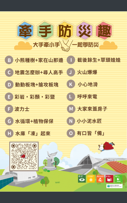 二、該園區致力於推廣地震科學、建築安全及防災教育,特別 規劃旨揭活動,透過套裝課程,帶領大家從多元主題來認 識地震與防災。