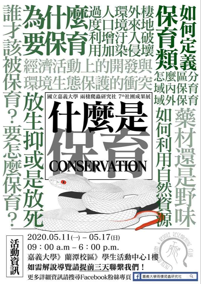(一)社團介紹:展場有駐點社員,進行社團活動解說,並藉此機會向大眾宣導滋擾蛇類及外來種移除的原因與重要性。