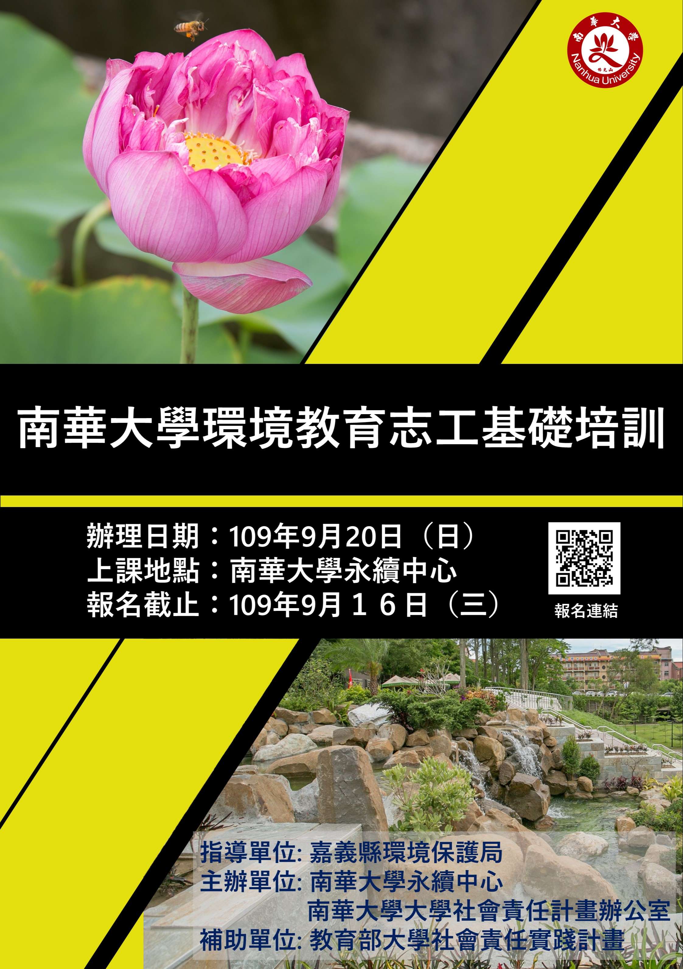 二、課程日期:109年9月20日(日),上課地點:本校永續中心。