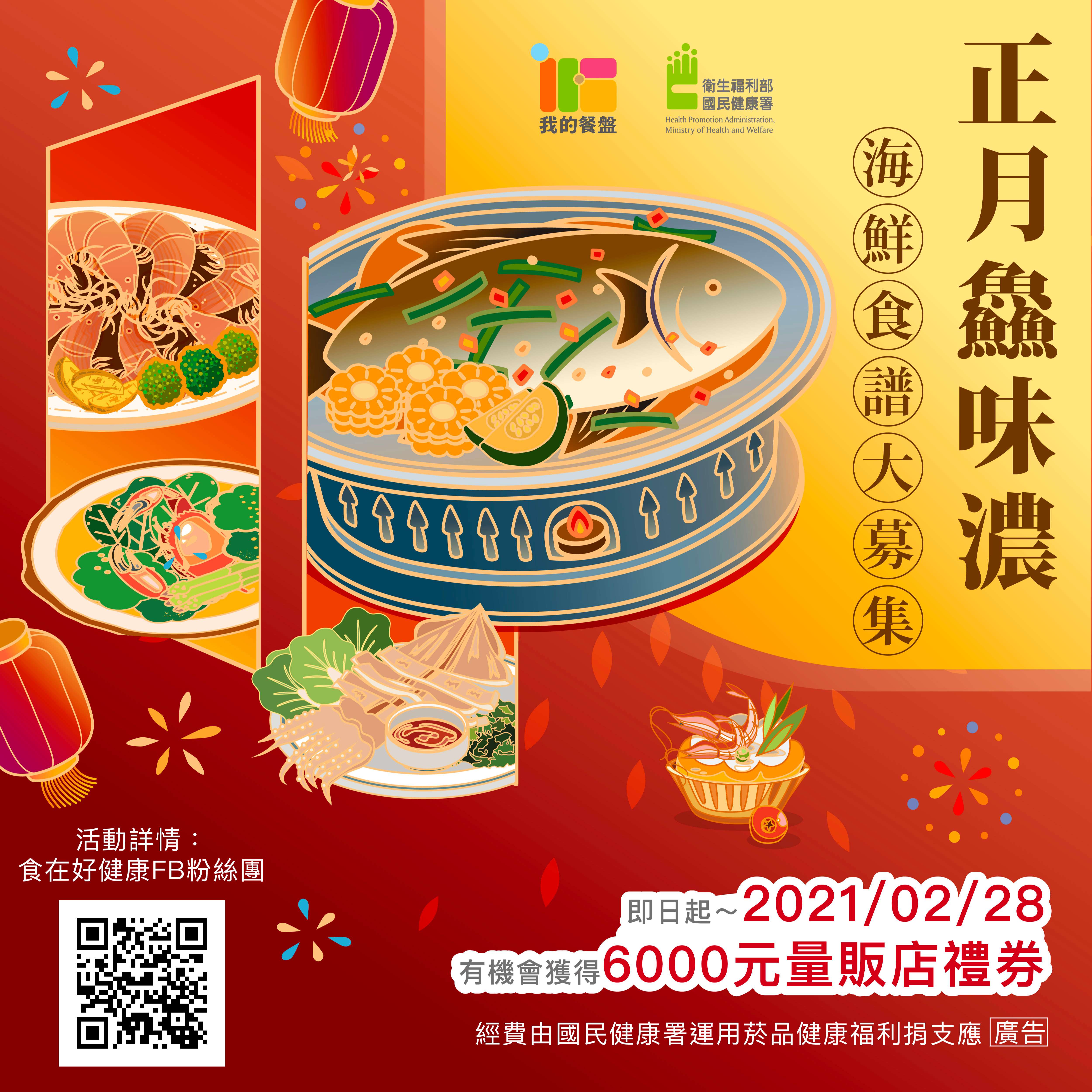 一、國民健康署為鼓勵民眾選擇脂肪含量低的蛋白質食物,並增加蔬菜類、全榖雜糧類之攝取,邀請民眾設計搭配蔬菜類及全榖雜糧類之海鮮料理食譜。食譜募集活動自即日起至110年2月28日止,食譜請郵寄至 emily.huang@learneating.com,經營養師審查後即可獲得抽獎資格,得獎者將獲得量販店禮券。詳細活動辦法請見「食在好健康」臉書粉絲專頁(https://www.facebook.com/104181431039374/posts/277262667064582/)。
