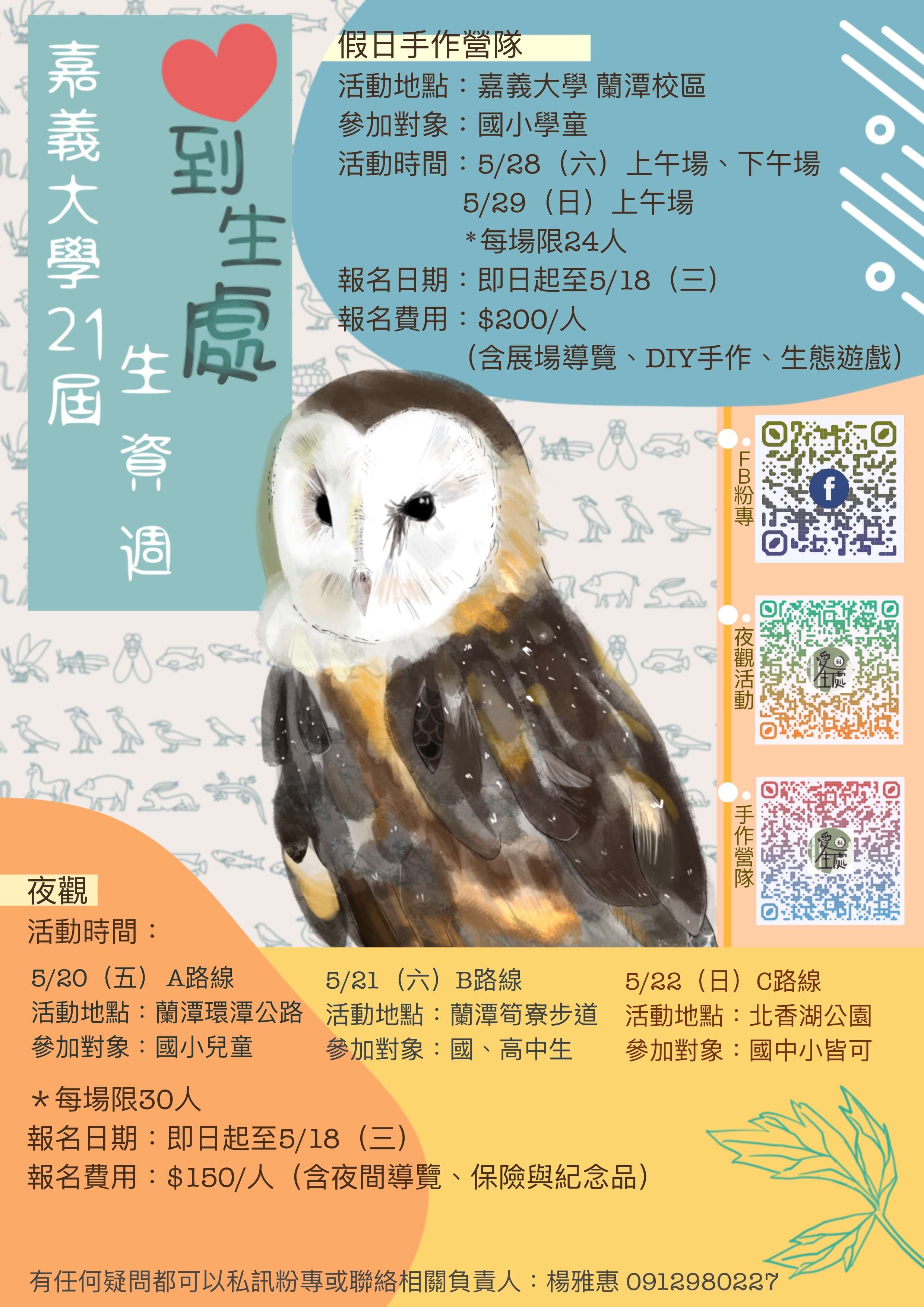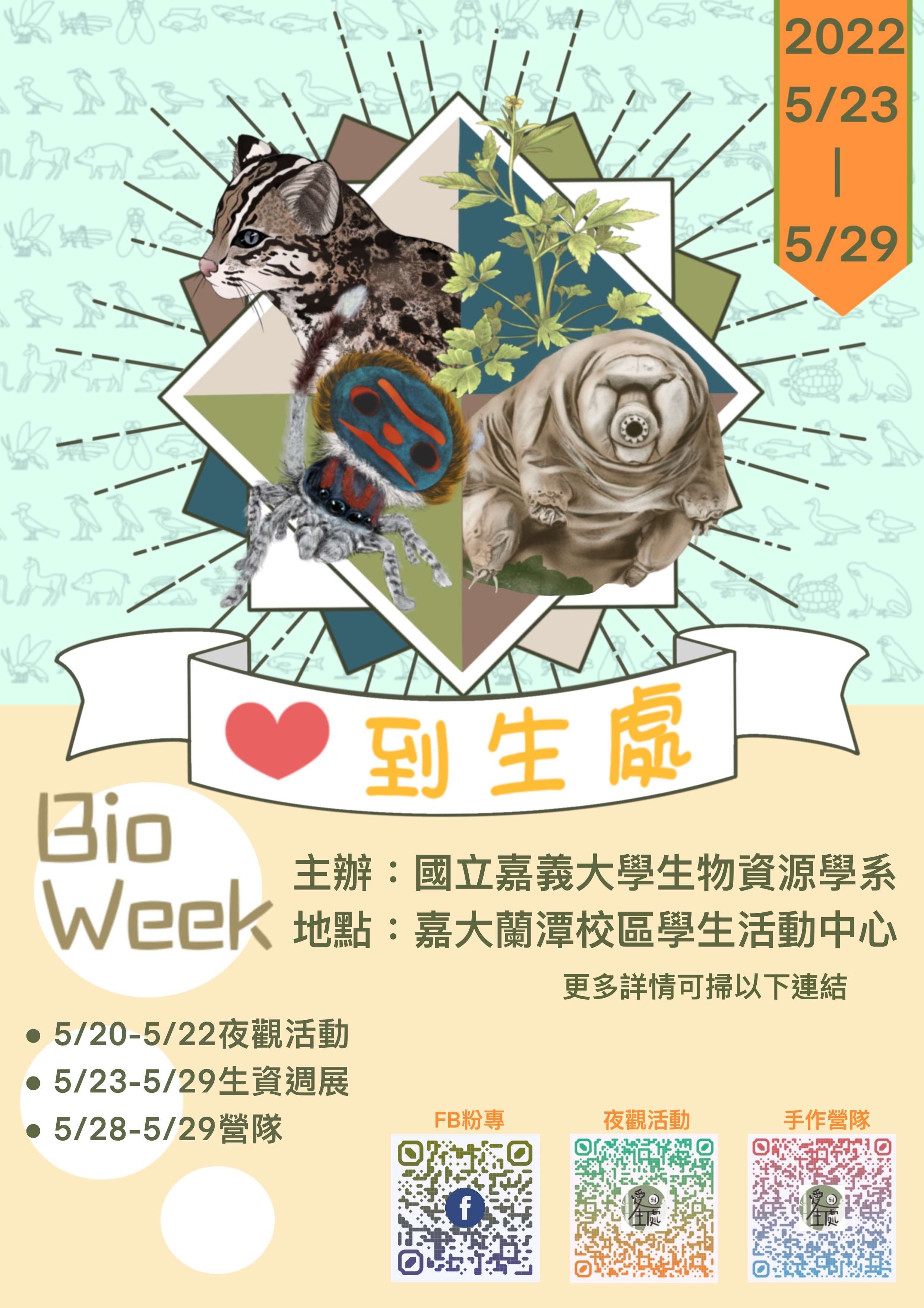 嘉義大學生物資源學系於111年5月23日至5月29日,將舉辦第二十一屆「生物資源週-愛到生處」活動