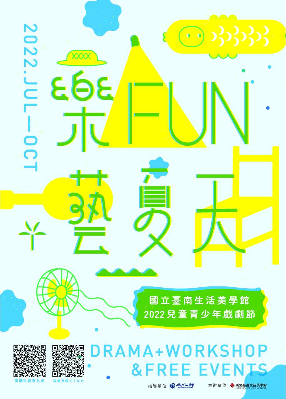 一、為使兒童及青少年有機會接觸戲劇及表演藝術,本館111年度規劃「2022兒童青少年戲劇節《樂FUN藝夏天》」活動,邀請四個具特色專業劇團演出,包含:無獨有偶工作室劇團探索生命意義的懸絲偶劇《快樂王子》、影響新劇場的互動體驗《來玩好滋味》、阿伯樂戲工場的糖業歷史劇《糖甘蜜甜》與斜槓青年創作體的講述親子關係的偶戲與默劇《你欲泅去佗位?》,共四齣劇場演出,每齣演出兩場次。相關系列活動資訊,歡迎至本館官網查詢https://www.tncsec.gov.tw/。
