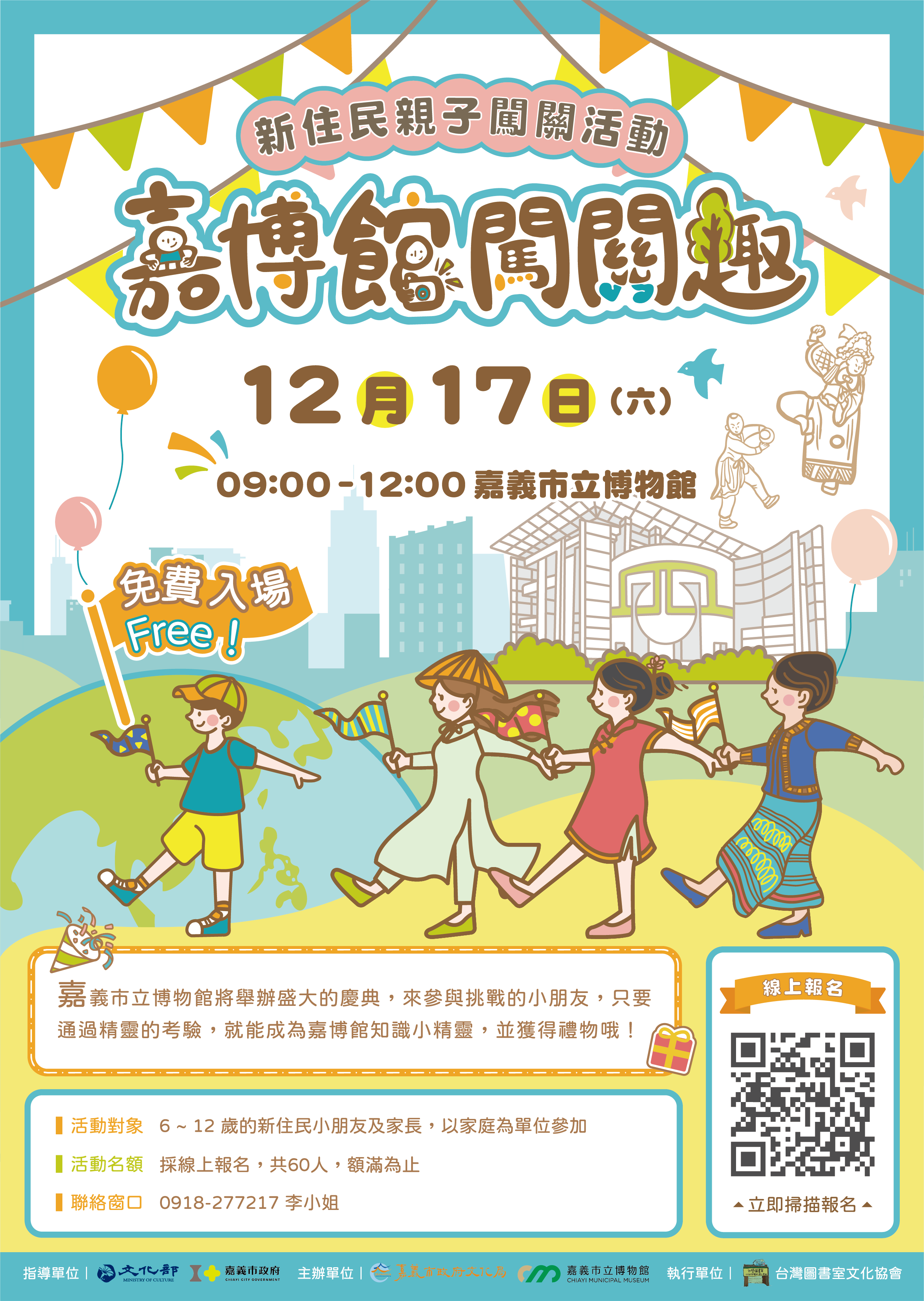 ✦ 活動時間:2022/12/17(六) 09:00~12:00 (分2梯次,闖關活動時間約1小時,其他時間可自由參觀嘉博館)