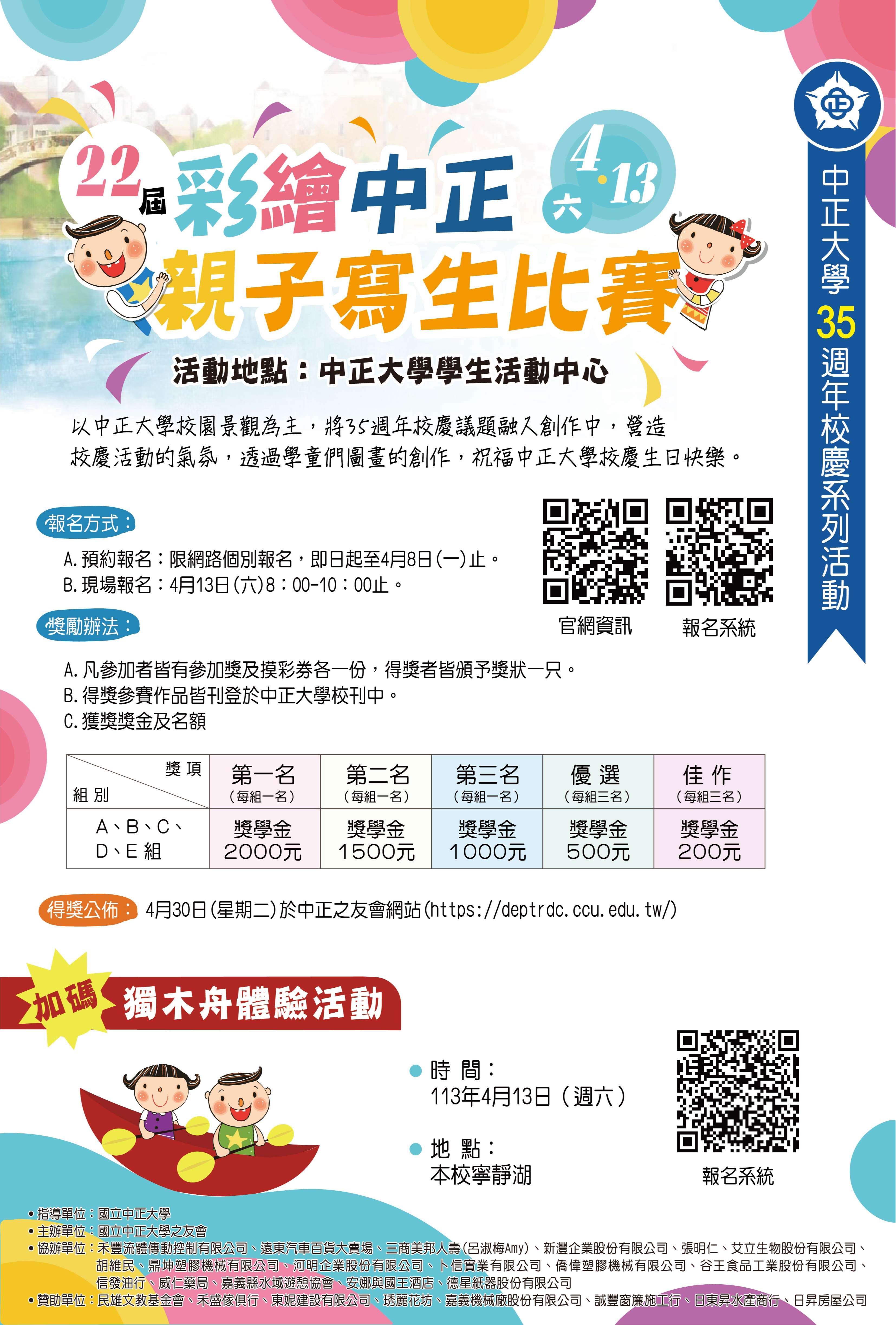 二、謹訂於113年4月13日(六)上午8時,假本校學生活動中心辦理,活動報名網址:https://reurl.cc/n71X2d,活動海報詳如附件一。
