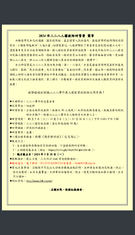 一、依據財團法人二二八事件紀念基金會113年9月16日(113) 228貳字第1131400829號函辦理。